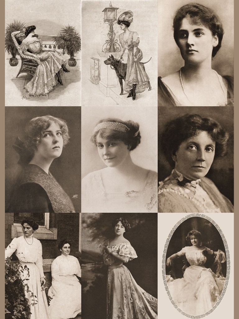A page of photographs and illustrations of women, 1907 to 1911, as a one-page ATC. The zip file includes the page as a .jpg, a .png, and a .pdf.