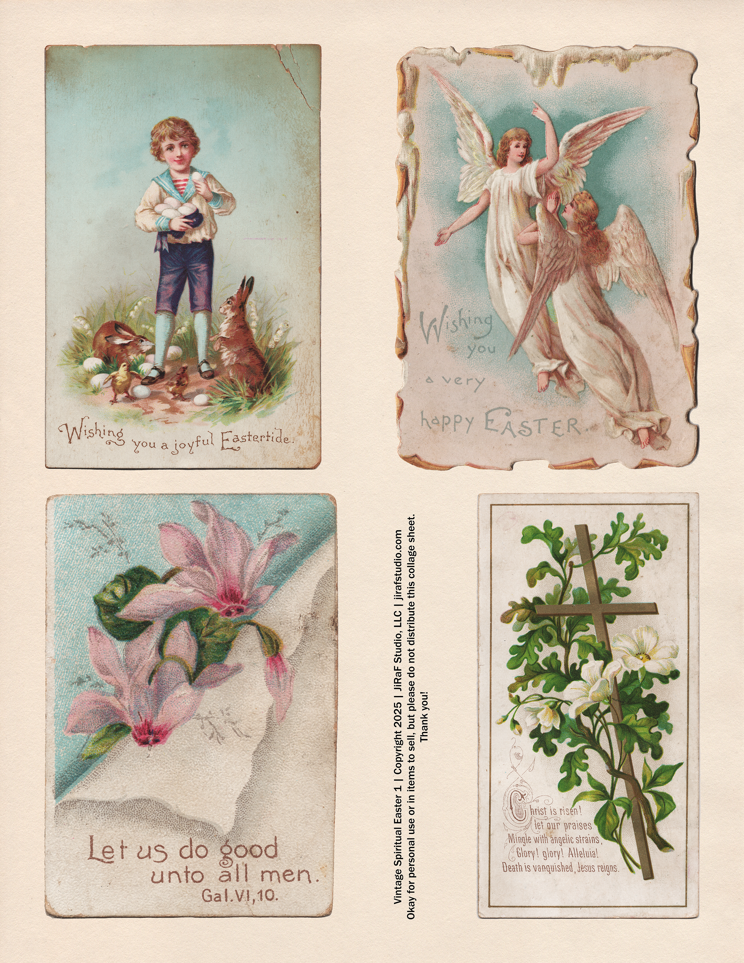 Here is a digital download of 11 beautiful Easter images to print and cut out, then add to your artwork (art journaling, junk journaling, scrapbooking, cardmaking, etc.).